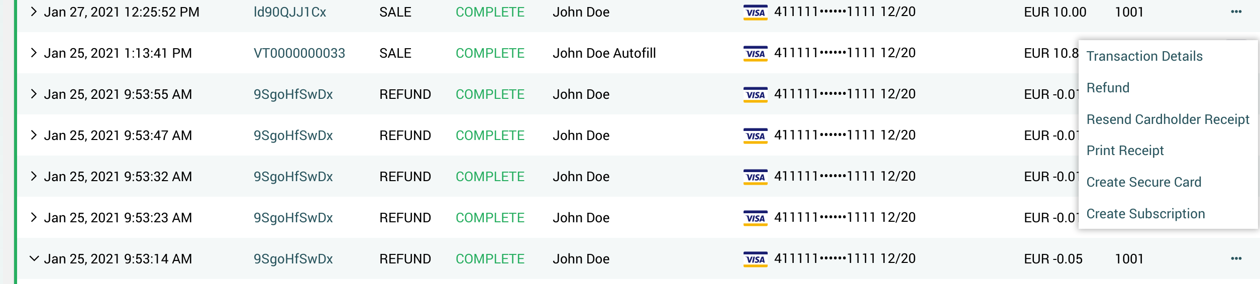 You can quickly perform actions on the transactions listed by clicks on the dots [∙∙∙] menu.
