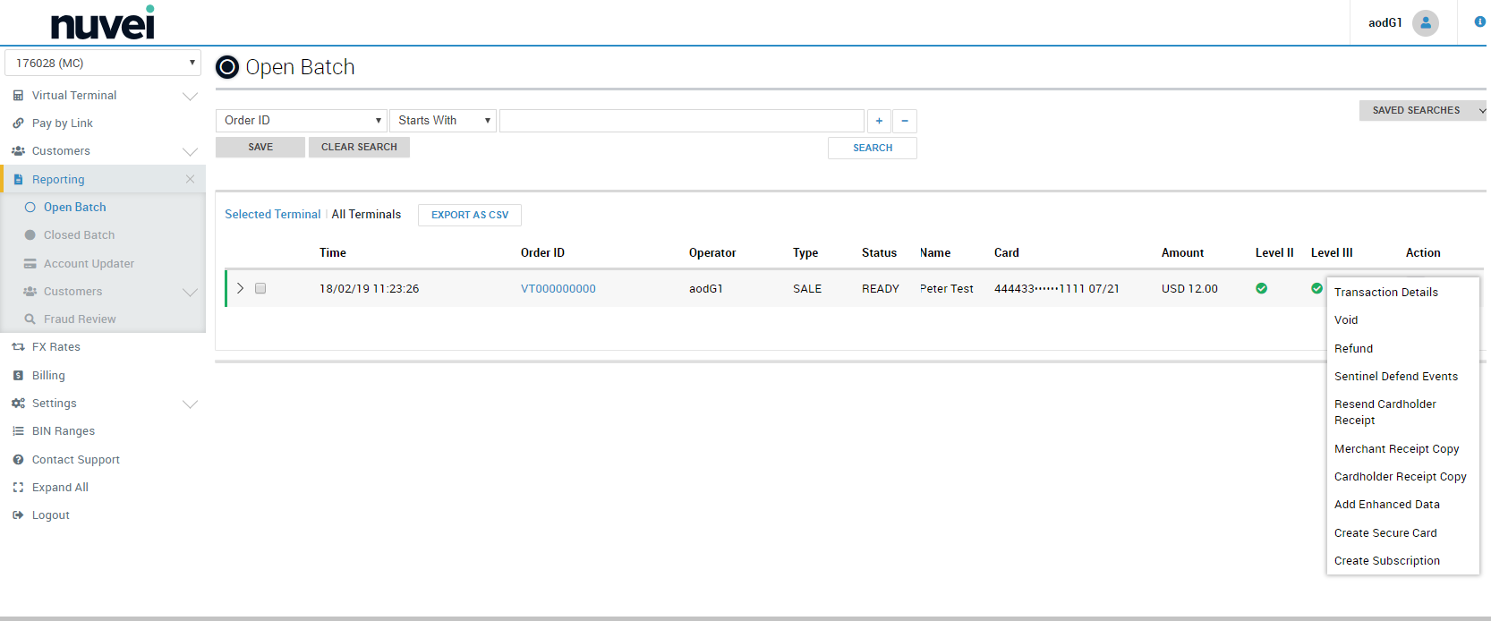 Open Batch: These are transactions that have not yet settled. For most merchants they are “todays” transactions. Any Sale or Refund transactions will be settled the next time settlement is run for that Terminal ID as long as their status is Ready, Void, Declined, Pickup (lost or stolen card) or Referral.