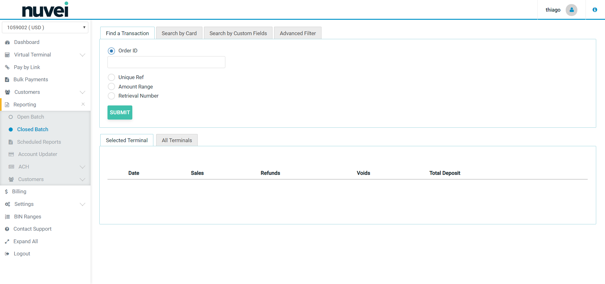 Closed Batch: This is a historical list of all previous batches for the Terminal. The date stamp listed is the exact date and time that the transactions were uploaded to the acquiring bank as a batch.