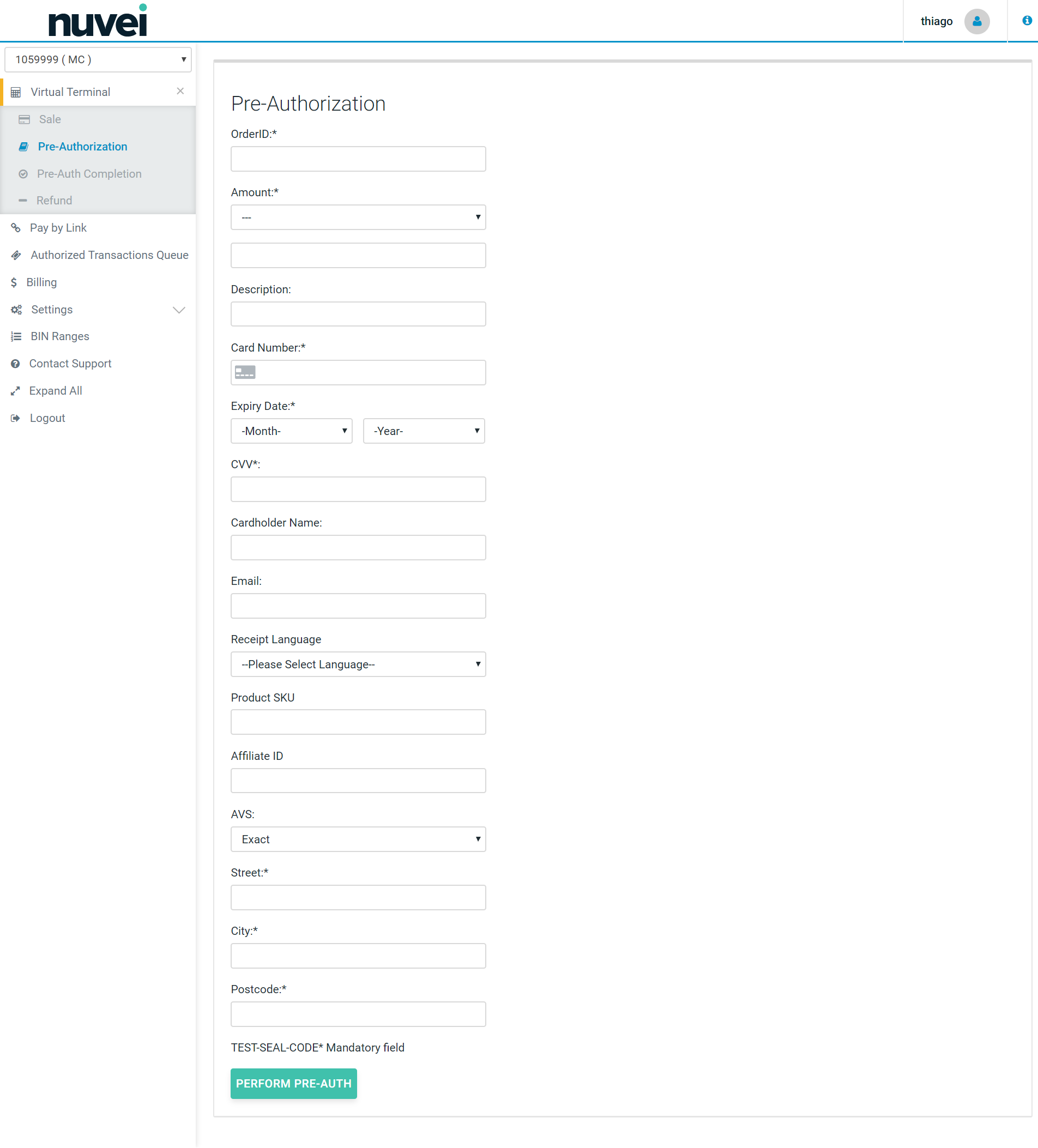 You can process a Pre-Authorization using Virtual Terminal in the Selfcare: