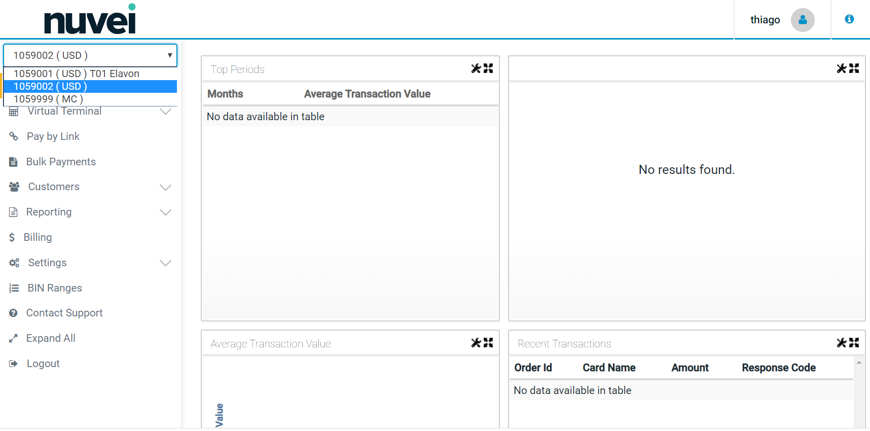 Please note that you might have multiple TIDs under one MID, and you can switch between your TIDs using the drop-down list underneath the Worldnet Payments logo as per the example below.