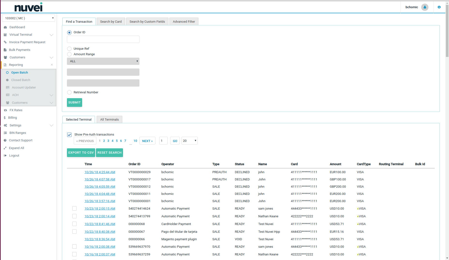 All the payments processed with CUP can be check on Open or Closed Batch. The Card Type for CUP transaction is UNIONPAY. Note: all declined transactions show card number as ‘0000’. This is expected system behavior due to China UnionPay handling of declined transactions.